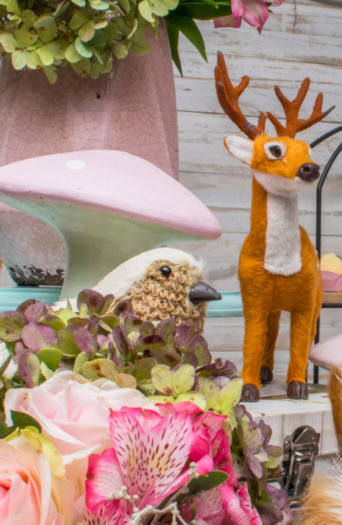 If you’re looking for a softer color palette, then try accessorizing your table with decorations like these pre-made elements from Big Dot of Happiness, these cupcake wrappers, or this bunting. Whether you choose a bold color palette or a soft one, some of the most basic elements for pulling off a woodland-themed are the actual creatures and elements of nature. Try adding in sprigs of rustic twigs, flowers, and stuffed animals to carry the theme in a fabulous way!