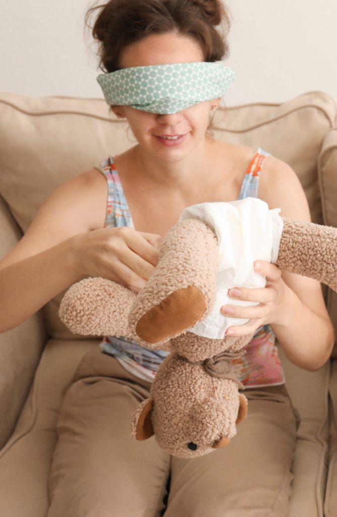 - Blind Bear Diaper Challenge: Have each participant wear a blindfold and see who can diaper a stuffed bear the fastest!